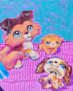 Acrylic on wood, 7" x 5" He was a dog. She was a cat. Theirs was a forbidden love.