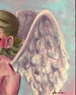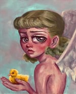 Acrylic on Canvas. Angel holding baby duck. 10" x 8"